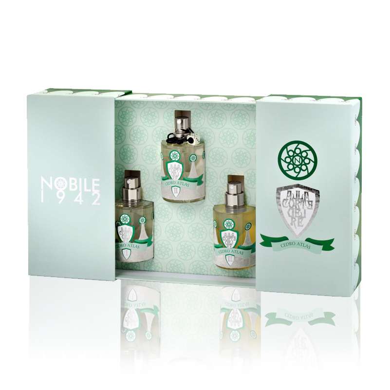 Cedro Atlas di Nobile 1942 è un cofanetto, facente parte della collezione “Alla corte del Re”, composto da 3 accordi costruiti intorno all’essenza di legno di un albero che cresce nell’Africa del Nord, in Marocco, sulle alture dell’oasi di Atlas: il Cedro Atlas.