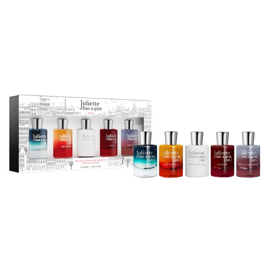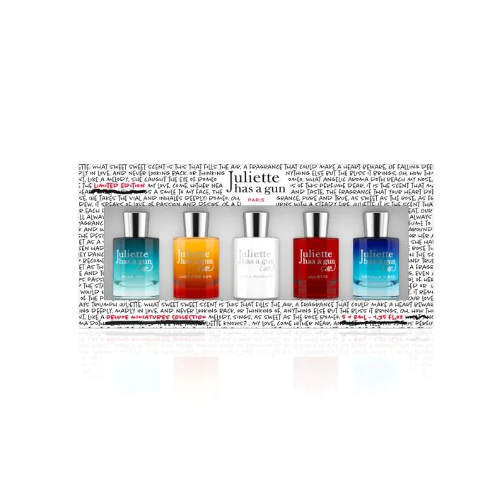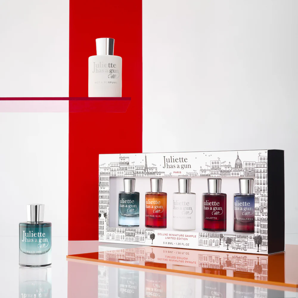 “Juliette has a Gun” ha realizzato il “Deluxe Miniatures Collection”: un kit di miniature delle fragranze tra le più richieste del brand. Cosa c’è di meglio che scoprire questi profumi iconici in versione miniaturizzata? Potete regalarle o tenerle tutte per voi! Questa Deluxe Collection contiene 5 miniature (Eau de Parfum da 8 ml l’una) tra i bestseller, confezionate in flaconi splash.