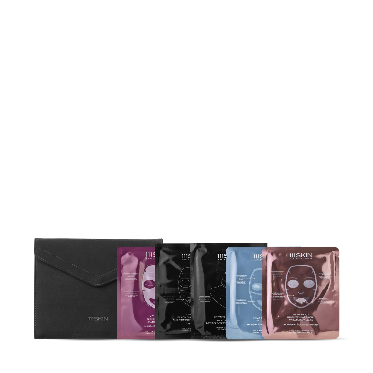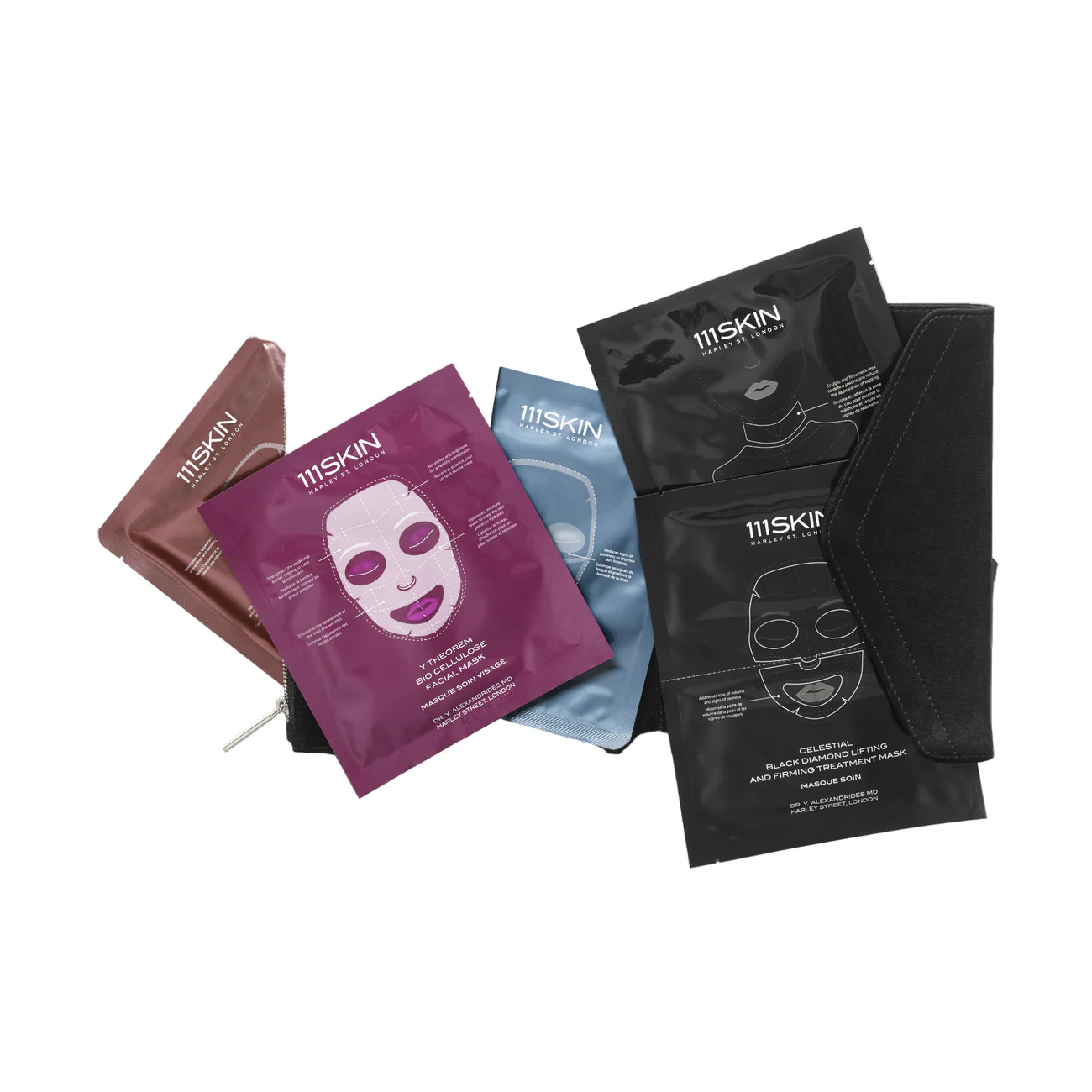 Un lussuoso diario (pochette) contenente n. 5 maschere viso in idrogel, adatte per risolvere le svariate problematiche della pellePensato per il rituale di bellezza definitivo, da usare a casa o in viaggio. Il set “Face Masking Journal” firmato “111 Skin” presenta cinque delle maschere più virali ed innovative del brand, in una fantastica Limited Edition… Confezionate in un’elegante pochette nera, che si apre come un diario, questa selezione di maschere in idrogel, che fungono da trattamento, offre soluzioni mirate ispirate all’esperienza clinica del chirurgo plastico e ricostruttivo Dr. Yannis Alexandrides, pensate per affrontare ogni problematica della pelle, da affrontare e trattare con la massima cura e precisione.