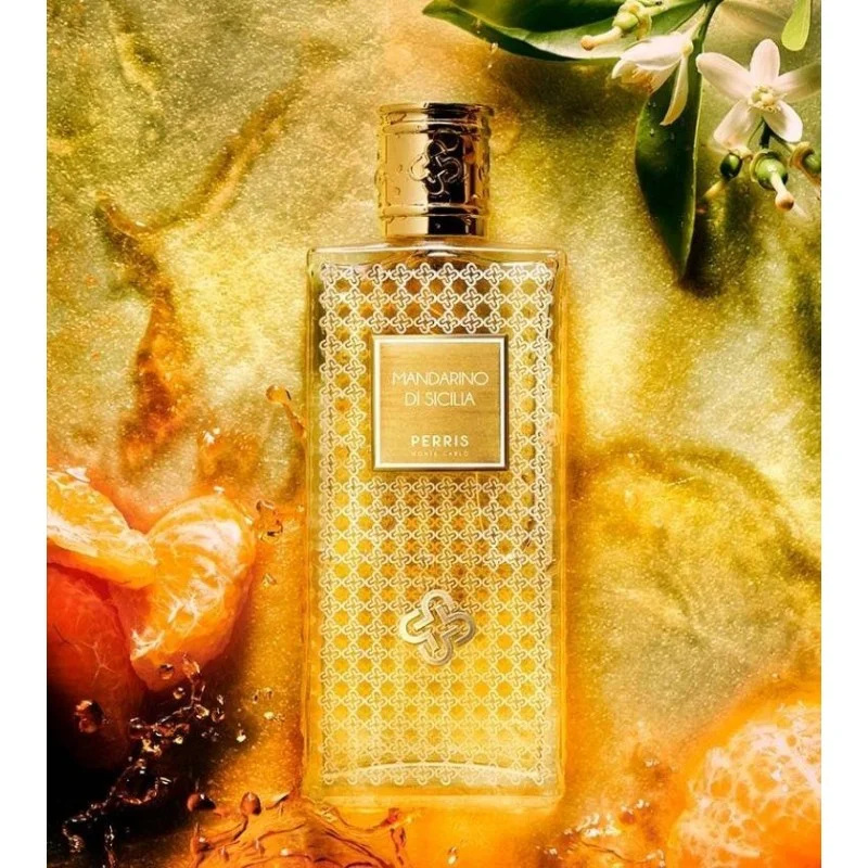 “Mandarino di Sicilia” di Perris Monte Carlo è un giardino d’agrumi armonizzante avvolto in un tenero bouquet di fiori bianchi: mandarino verde di capua, arancia amara, mandarino giallo e petitgrain paraguay si lasciano avvolgere da un cuore tenero di gelsomino, geranio e fiore d’arancio, mentre il fondo dona il suo sillange grazie alla presenza di ambra, musk e legno di cedro. Una fragranza effervescente, brillante, che ricorda il mare e il paesaggio siciliano con il suo affascinante ed intrigante aroma di agrumi, donando un effetto tonico e avvolgente come una brezza di fiori che sbocciano ai primi raggi del sole.