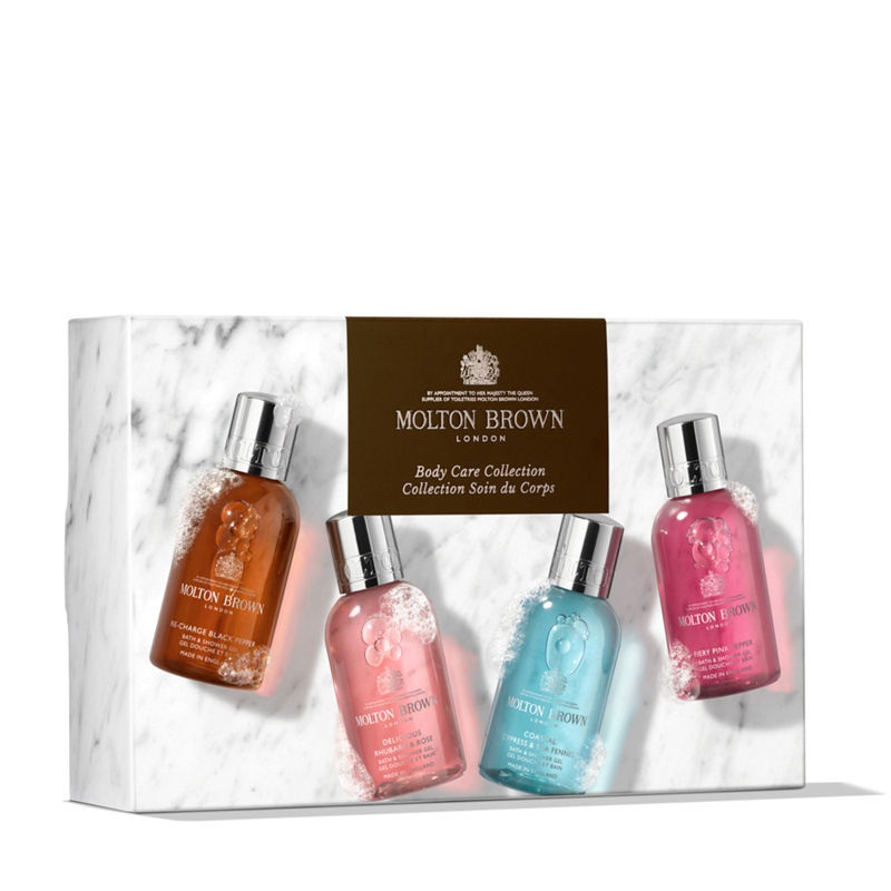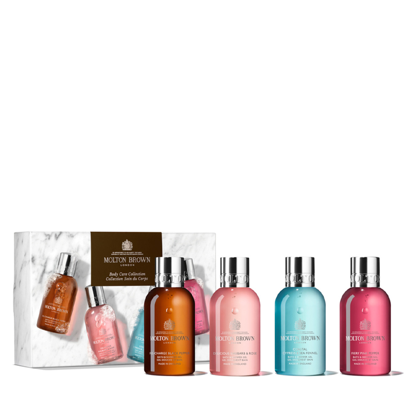 Lussuoso cofanetto da viaggio composto da quattro gel doccia rinfrescanti ed essenziali per perfezionare la tua beauty routine quotidiana.
